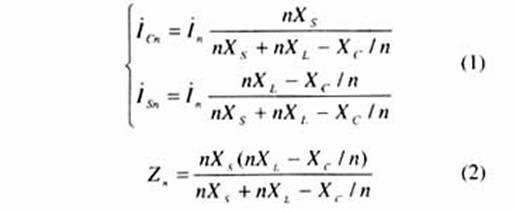 式中n為諧波次數(shù);n為諧波源的第n次諧波電流;XS為系統(tǒng)等值基波短路電抗;XC為電容器組基波容抗;XL為串聯(lián)電抗器基波電抗。